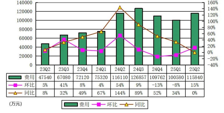 高途2025年第二季度费用为11.584亿元,较上年同期的11.611亿元下降0.2%,主要是由于公司精细化的效率管理,市场推广活动支出同比下降。另一方面,销售及管理人员数量增长带来人力费用的增长,部分抵减了市场费用的下降。
